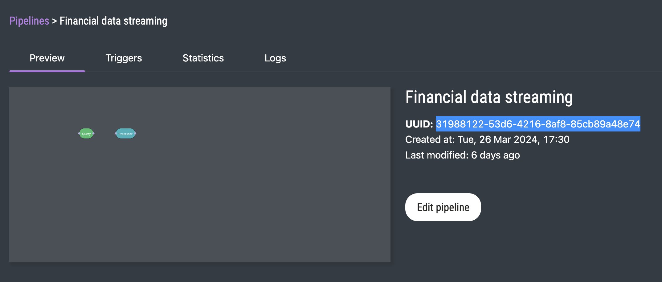Pipeline UUID can be found either in the list of pipelines or on the detailed page of the pipeline: